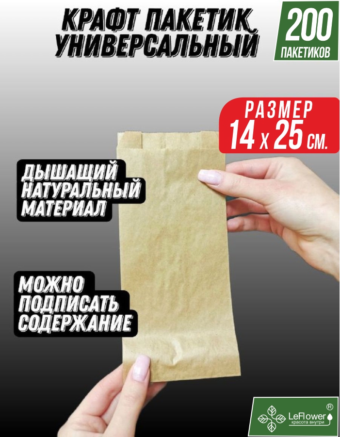 Новинка от поставщиков посадочного материала! Крафтовые дышащие пакетики для хранения ваших семян, посадочного материала (луковиц и пр.). Для правильного сохранения семян после сбора урожая, лучше всего хранить их в бумажной упаковке. Тогда они не запреют, не наберут влажность, не будут гнить и сохранят всхожесть в отличии от хранения в герметичной упаковке. Это отличный способ для хранения семян фруктов и овощей в домашних условиях. Если Вы приобрели семена в полиэтиленовой или другой герметичной упаковке, рекомендуется сразу расфасовать их и хранить в бумажной упаковке. Именно в таких пакетиках мы храним огромное количество посадочного материала, отправляем по всей России. Мы проверили крафт пакеты на ассортименте более чем 50 видов посадочного материала и поэтому уверены в их качестве. Наш посадочный материал под брендом LeFlower (зарегистрированный торговый знак) продается и упаковывается для длительного хранения именно в таких пакетиках. Бумажный пакет (вариант размера указан на фотографии товара) из натуральной крафт-бумаги вмещает много разных семян, луковиц овощей и цветов. Закрывающиеся стикеры сзади помогут предотвратить проникновение жучков и пр. вредителей, сохранят среду внутри пакета и предотвратят их загнивание и запотевание семена. Вы сможете хранить как собственные семена заготовленные на даче, так и переупаковать семена, приобретенные в полиэтиленовых или других пакетах. Подходят для семян: томатов, огурцов, перца, тыквы, моркови, льна, укропа, петрушки, кабачка, календулы, свекла, петунии, луковичные тюльпана, нарциссов, гиацинтов, крокусов, лилии, горчицы, капусты, и различных других цветов и трав, орехов и цукатов. В комплект входят удобные стикеры замочки, закрыв которые семена не рассыпяться и будут в порядке. Пакетики бумажные для семян просты, удобны и комфортны в использовании, представлены разного размера (8*18см., 9*20, 14*25 в развернутом состоянии, с наименованием на конверте и без надписей) . Пакетики без надписей универсальные, подойдут для упаковки любого вида продукции (творчества, полиграфии и личных вещей). На пакетики легко можно написать все что угодно, ручкой, фломастером, карандашом или маркером.