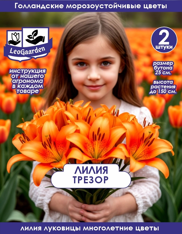 Лилия Трезор (Tresor) относится к Азиатским гибридам. Высота растения 100-150 см. Цветок ярко-оранжевый, у центра темно-оранжевый крап, диаметр цветка до 25 см. Неприхотливые, выносливые растения, отличаются морозостойкостью, быстро и легко размножаются. Цветки разнообразны по форме и окраске. Цветут во второй половине июня-июле. Срок осенней посадки - август-сентябрь, весенней – конец апреля-май. Пригодны для выгонки во внесезонное время. Аромат отсутствует. Зимостойкость хорошая.