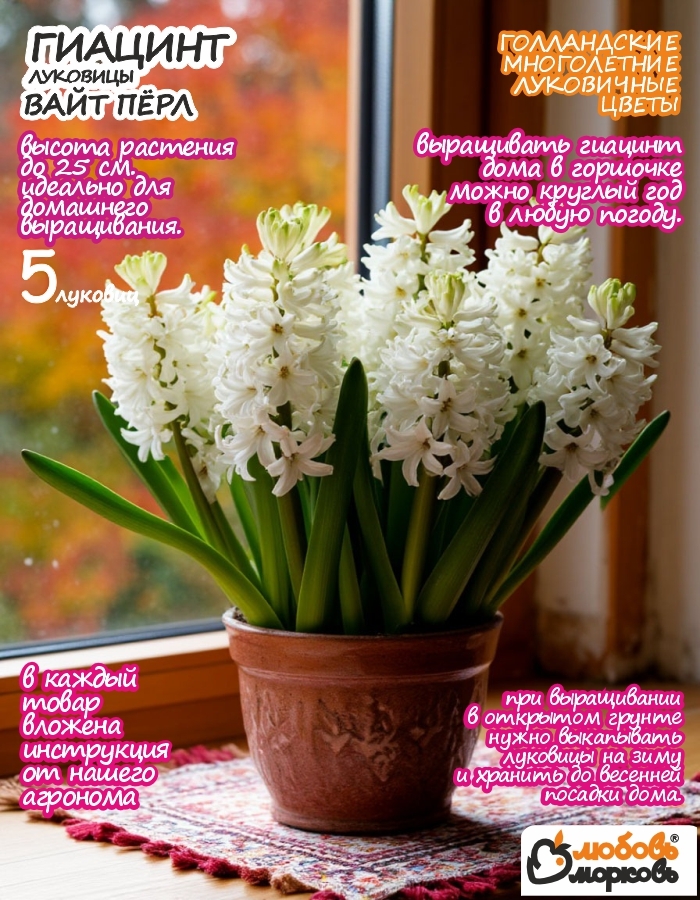 Обогатите свой сад этим приятным акцентом - луковицами цветов гиацинт. В комплекте гиацинт луковицы для посадки отвечают высоким стандартам качества и подарят вам красочное разнообразие в ландшафтном дизайне сада. Блестящий Уайт Перл - это идеальный выбор не только для пышных посадок, но и поражает превосходными результатами при выращивании в контейнерах или цветочных корзинах.