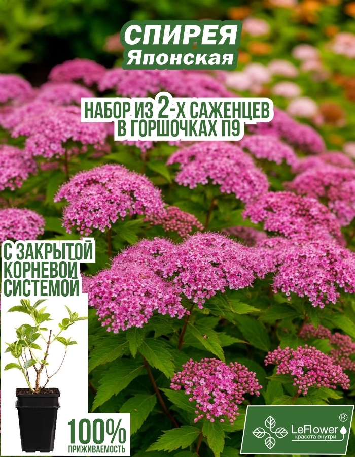 Спирея Японская- 2 шт. Высота куста около 1 м, листья крупные. Верхушечные листья оранжево-красные, с возрастом зеленеют, но на верхушках побегов появляются новые оранжево-красные молодые листья. Получается, что в центре куст зелёный, а сверху оранжево-красный в течение всего лета. Очень необычный красивый сорт! Куст можно укорачивать несколько раз за лето, вызывая увеличение числа молодых листьев – получается оранжево-красный шарик. А если побеги не стричь, то они достигнут своей максимальной высоты и прогнутся под тяжестью листьев – тоже замечательная картинка. Очень хороша осенняя окраска листьев, причём они сохраняются на растении до самых морозов.