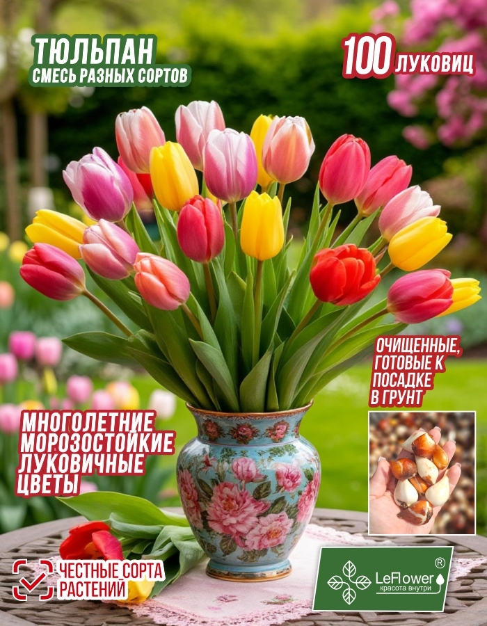 Тюльпаны Микс сортов 100 шт- крупный размер луковиц для выгонки или озеленения, идеальный выбор для всех любителей луковичных растений. Эти многолетние цветы великолепно смотрятся в саду или на клумбе, придавая им особое очарование и красоту.