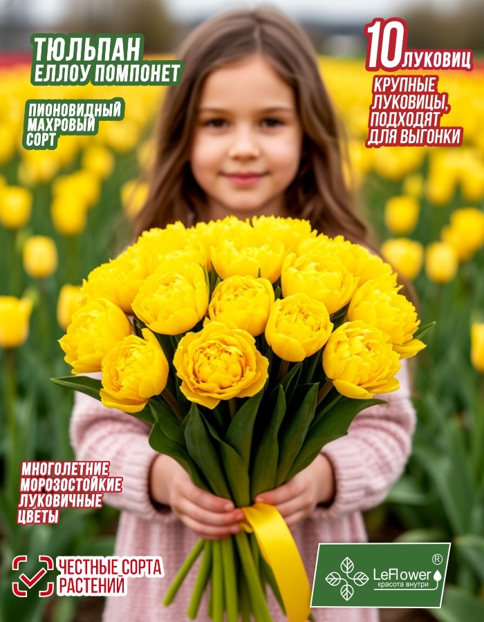 Луковицы голландских тюльпанов, крупный разбор 12+. Урожай 2025года. Луковицы идеально подходят для выгонки (крупные) или озеленения вашего участка. Тюльпан Йелоу Помпонет (Yellow Pompennete) - очень изысканный пионовидный сорт, чарующий своими большими махровыми цветами. Лепестки в числе 18 – 20 штук окрашены в насыщенно-желтый цвет. Такое растение обязательно станет солнечно-прекрасным пятном на клумбе. Цветки в диаметре могут достигать от 8 до 10 см. Бутон распускается постепенно, показывая лучистые переливы оттенков. Цветоносы крепкие, не страдают в дождевые и ветреные периоды. Высота цветоносных стеблей – 45 см. Листья сочно-зеленого цвета выгодно оттеняют цветение. Цветет культура на протяжении 3 недель.