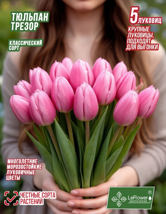 Тюльпан сорт Трезор 5 шт - луковицы голландских тюльпанов, крупный разбор. Урожай 2025 года. Луковицы идеально подходят для выгонки и озеленения вашего участка.